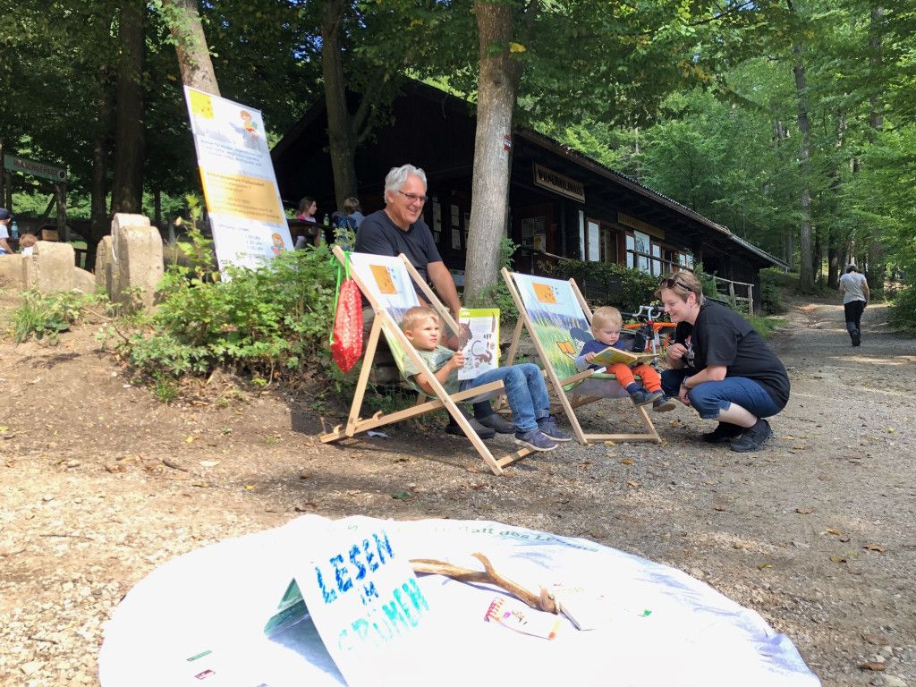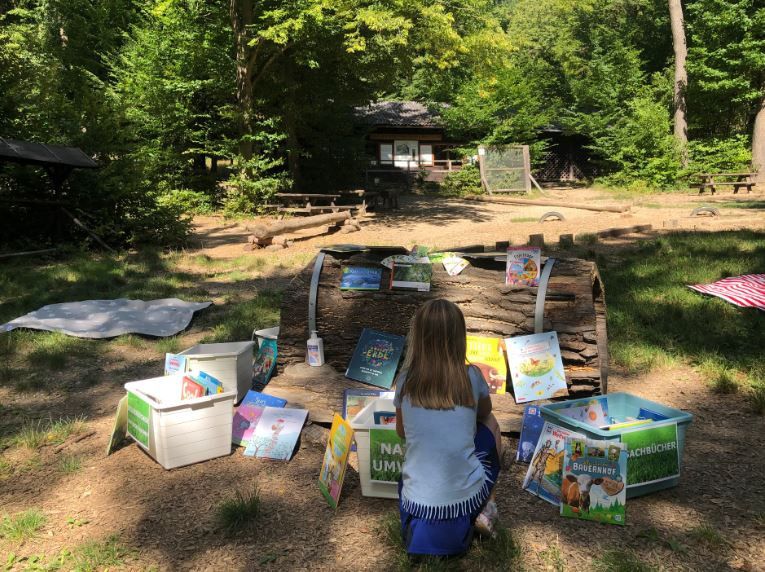 Die Blätter rascheln – im Wald und in der Schul- & Stadtbibliothek bei der Kooperation „Natur trifft Buch“: Sommer, Sonne, frische Luft genießen und dabei gemütlich auf einer Picknickdecke an einem Baum gelehnt aus einer Vielzahl an Bücherkisten in passender Literatur schmökern oder gleichzeitig mit einem Bestimmungsbuch der Wald oder die Umgebung erforschen. Geeignet für Familien mit Kindern bis 10 Jahre.